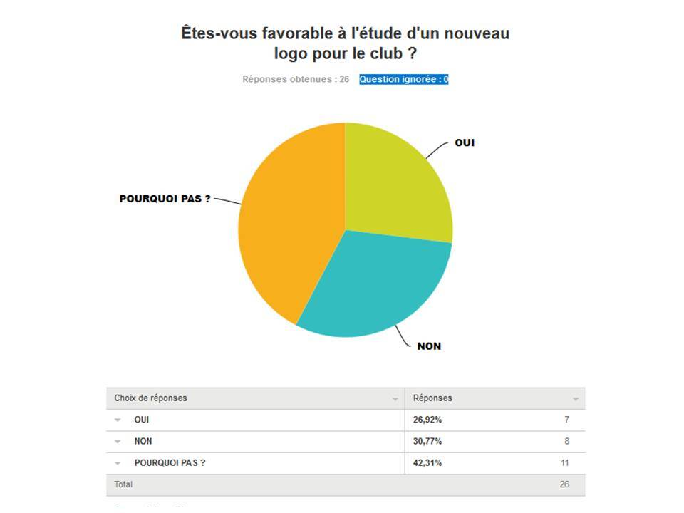 Un vote "oui" minoritaire pour le sondage sur le projet d'étude d'un nouveau logo pour le club.